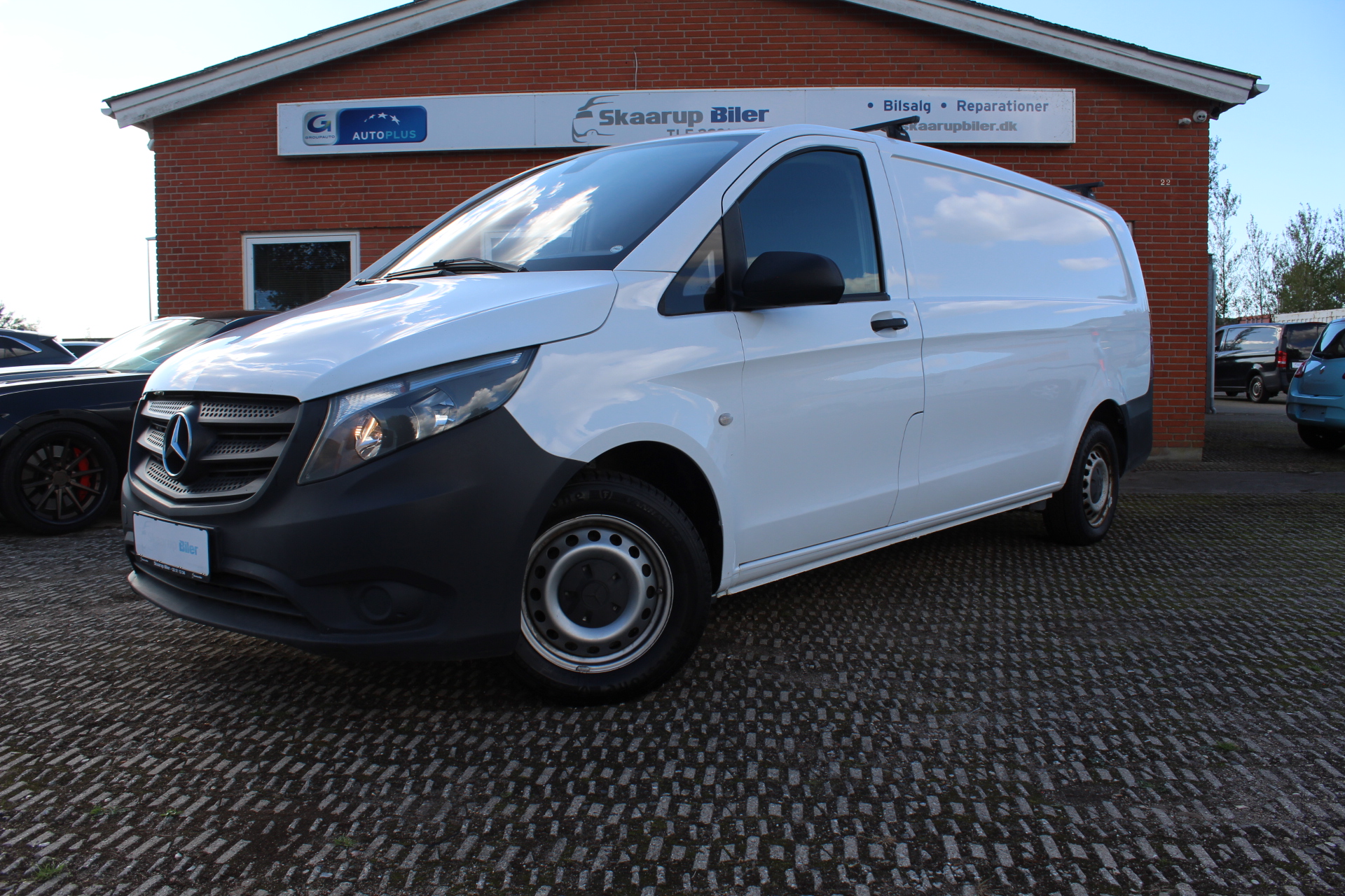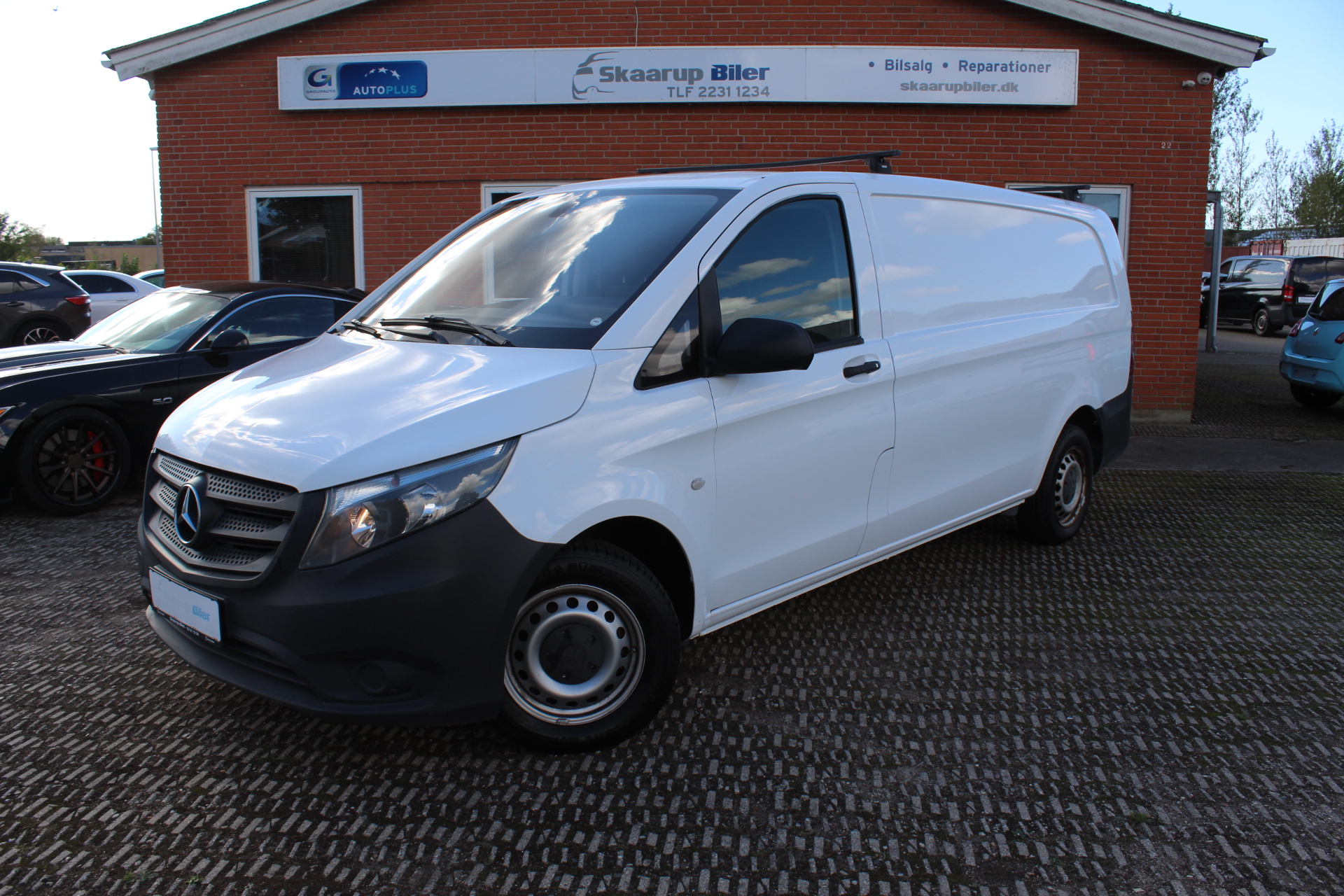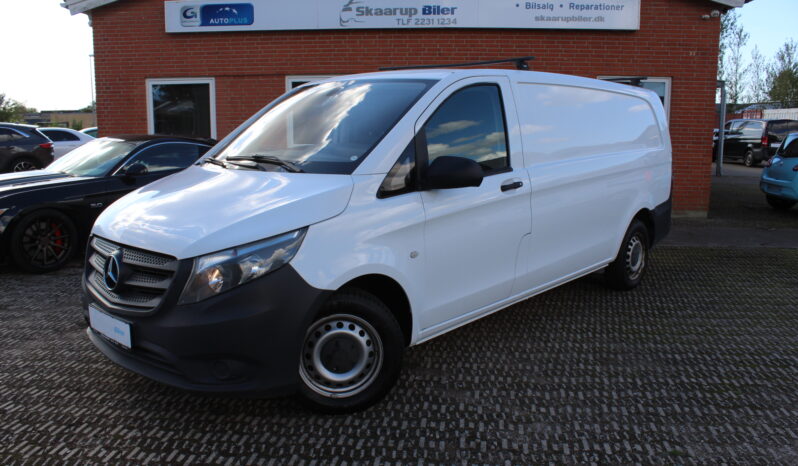 Pæn Vito i ekstra lang version. Bilen er momsfri, så kan benyttes både til firma og privat. Træk til 2000 kg. og tagbøjler. Nysynet 4/25 og mange nye dele. Bilen er med kørecomputer, multifunktionsrat, læderrat, stofindtræk, højdejust. førersæde, el-sidespejle, træk, fjernb. centrallås, fartpilot, udv. temp. måler, el-ruder, automatisk start/stop, db. airbags, esp. Mulighed for finansiering eller leasing. Sælges engros til CVR.